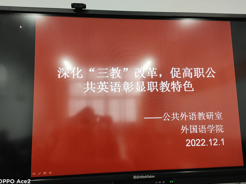 12月1日下午,公共外语教研室在外国语学院会议室举行了“ 教材改革”的主题教研活动。教材建设是人才培养的重要载体,对于学生职业知识掌握、职业技能获取、职业素养提升、职业道德养成具有重要的价值和现实指导意义。本次教研活动重在探索如何做好我校公共英语教材改革,深化三教改革,彰显职教特色。