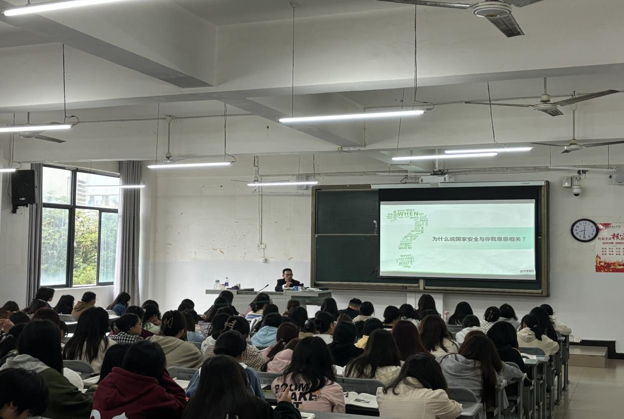 为进一步教育引导广大师生牢固树立国家安全意识,自觉维护国家安全和社会稳定,11月3日上午,学校党委委员、副校长刘光彬在尚学楼A202向外国语学院2023级新生讲授了以“新安全格局保障新发展格局”为主题的“形势与政策”课。