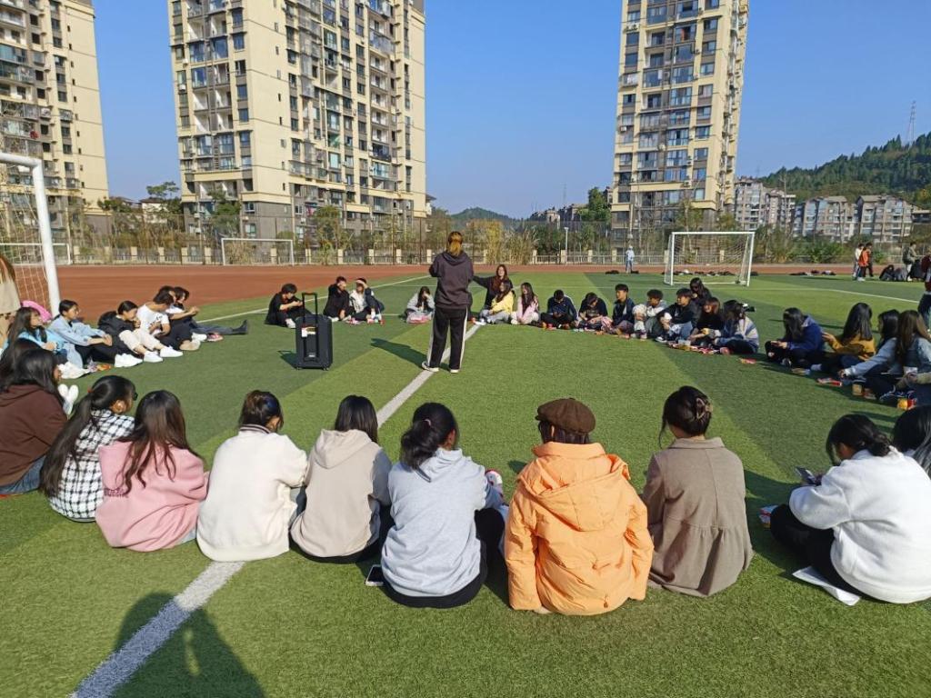 为加强人文关怀和心理疏导,培育学生自尊自信、理性平和、积极向上的健康心态,促进大学生心理健康素质与思想道德素质发展。2023年11月19日14:30—16:30,外国语学院团总支在第一足球场开展了一场以“完美心灵,你我共建”为主题的心理健康学生活动。外国语学院心理辅导员廖星雯,学生会主席团席春燕、韩宇、各部门负责人以及22、23级在校学生参加本次活动。