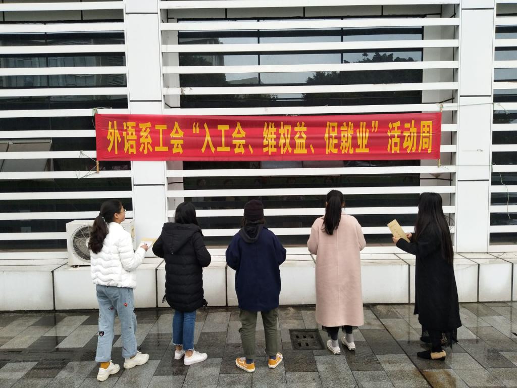 以外语系2019年毕业生为重点,将非在编职工、劳务派遣工纳入宣传范围,开展维权知识、工会知识宣传、讲座等活动。