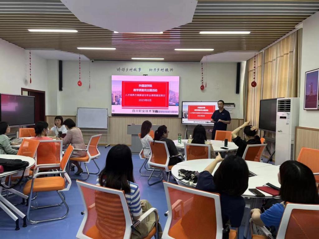为持续提升教育教学质量,巩固学校优良校风、教风、学风,进一步巩固专业与课程改革成效,四川职业技术学院外国语学院于2023年6月1日以教研室为单位,分别在博雅楼M212,M113开展了以“人才培养方案解读与专业课程建设探讨”为主题的教研活动,应用英语教研室主任唐剑锋,小语种教研室主任杨洋主持了此次活动,全体专业授课教师按教研室分组积极参与。