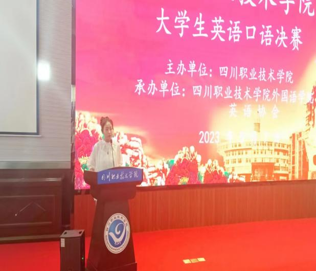 2023年5月7日下午,由四川职业技术学院主办,四川职业技术学院及四川职业技术学院英语协会承办的2023年四川职业技术学院“高教社杯”大学生英语口语技能大赛在学术报告厅举行。外国语学院党总支书记翟莲致辞,四川职业技术学院教学科长邓婷、外国语学院专任教师龚竹、毛玉坤、王淞及陈恒阳5人担任评审。