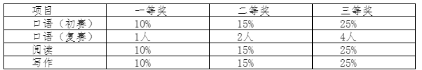 (四)赛事项目:口语、写作、阅读(比赛时间不冲突,可根据自身情况报多个项目)