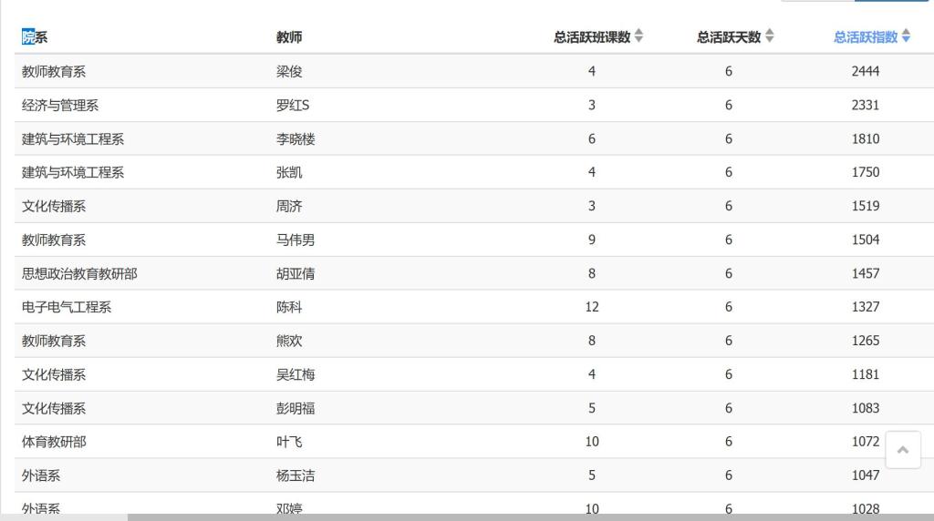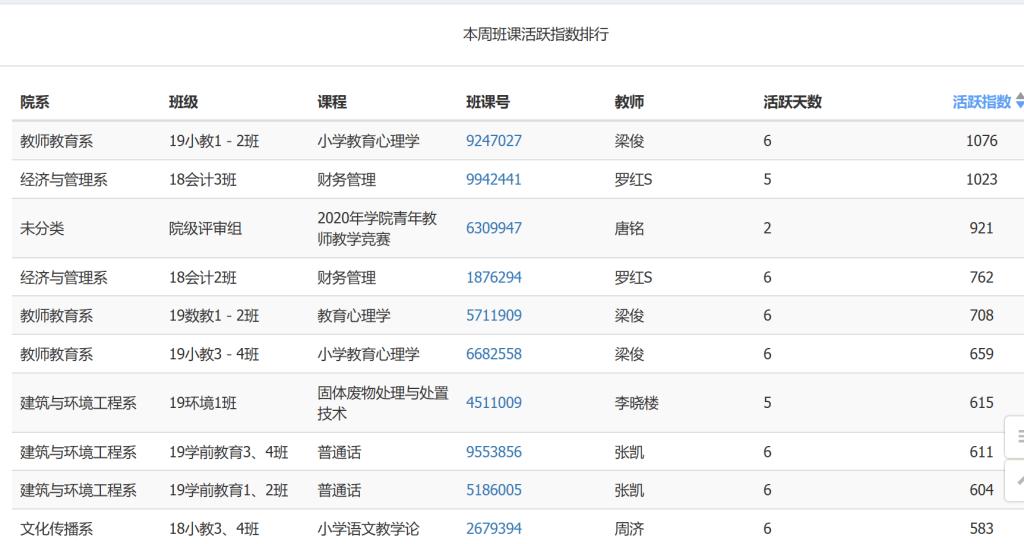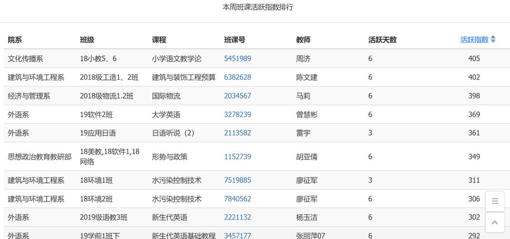 班课活跃度排名 |