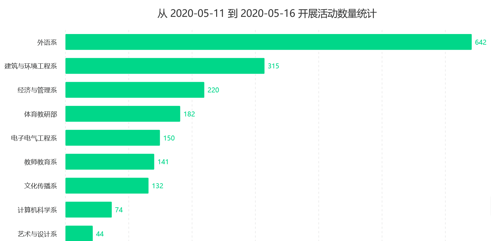 第十二周,外语系在线教学运行情况总体良好,班课活跃数、新开展活动、资源发布数量在云班课排行第一(外语系主打软件云班课),出勤率第二(含专升本辅导班数据),本周公外少数民族地区学生有借口网络不好缺勤人数上升现象。授课教师上传教学资源(音视频资源最多,图片和文档数量也充分)及课前准备都比较充分,课堂活动种类丰富,轻直播、小组任务、课堂表现比例最大,整体在全院表现突出,经过几个星期的教学,教师已适应了在线教学,能积极主动设计组织开展活动,效果良好,且学生能积极参与到教学活动中,曾慧彬、雷宇、杨玉洁、张丽萍、邓婷、苏雪莲、毛玉坤等老师本周组织教学活动效果较为突出。