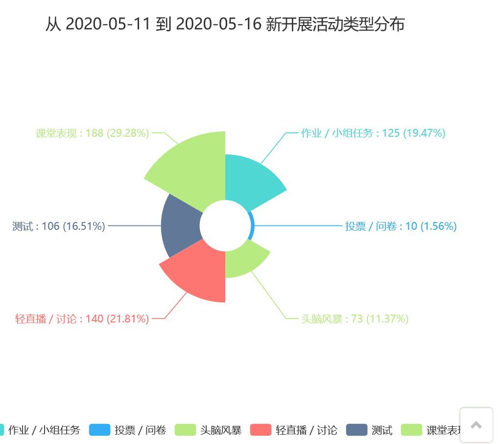 162条活动,含轻直播、头脑风暴、课堂表现、测试、小组任务、投票等形式,课堂表现使用较多 |