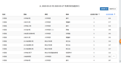 第五周,外语系授课教师上传教学资源及课前准备较充分,教师根据课程内容设计教学活动,种类丰富,能满足教学需求,教学满意度高,尤其是公共英语教学受到学生好评较多。补坤、罗峰上传资源在全院排名前5,郑瑜、杨玉洁、苏雪莲、娄佳丽新开展班课活动全院排名前10,龚竹、曾慧彬本周班课活跃指数全院排行前10,张丽萍07、杨玉洁、邓婷、郑瑜、左维娜、苏雪莲等老师本周组织教学活动效果凸显。