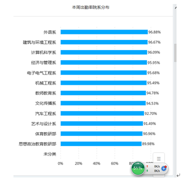 25个班出勤率100%,24个班90%以上,1个班84.62% |