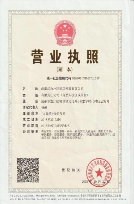 2019 年底,为四川省旅游协会民宿客栈与精品酒店分会:“发起单位”及