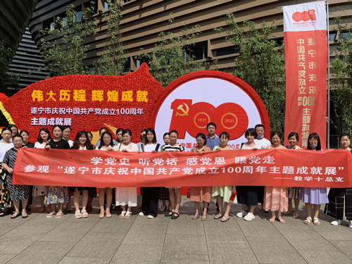 为庆祝中国共产党建党100周年,围绕“学党史、听党话、感党恩、跟党走”为主题开展“党史”学习教育,按照中共四川职业学院委员会要求,7月7日下午教学十总支组织全体老师到遂宁市文化中心文化馆一楼参观“遂宁市庆祝中国共产党成立100周年主题成就展”。