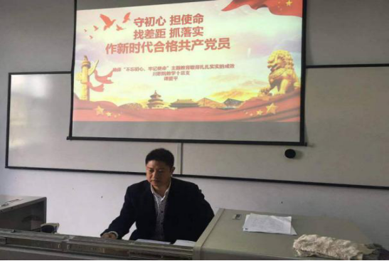 本次党课紧紧围绕“守初心、担使命、找差距、抓落实”做新时代合格共产党员”这个主题而展开。确保“不忘初心,牢记使命”主题教育取得扎实成效。党课上,谭爱平同志强调了四个迫切需要:一是用习近平新时代中国特色社会主义思想武装去武装全党的迫切需要。二是推进新时代党的建设的迫切需要。三是保持党同人民群众血肉联系的迫切需要。四是实现党的十九大确定的目标任务的迫切需要。要把握“守初心、担使命、找差距、抓落实”十二字总要求,就是要牢记全心全意为人民服务的根本宗旨,牢记我们党肩负的实现中华民族伟大复兴的历史使命。同时,从学习教育、调查研究、检验问题和整改落实四个方面讲述“不忘初心,牢记使命”的教工支部的实施方法。其次,结合近期实事政治即国内外发生的热点事件,每位党员进行了发言及交流。最后,支部书记重申了“守初心、担使命、找差距、抓落实”在实际工作中的重要性。