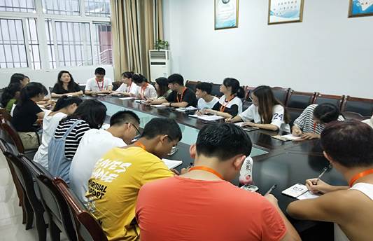 为发挥学生干部的模范带头作用,增强学生干部及部门间的凝聚力和战斗力,2019年9月9日下午6点30分,外语系团总支学生会新学期第一次学生干部大会外语系会议室顺利开展。外语系团总支学生会全体学生干部参加了本次大会。