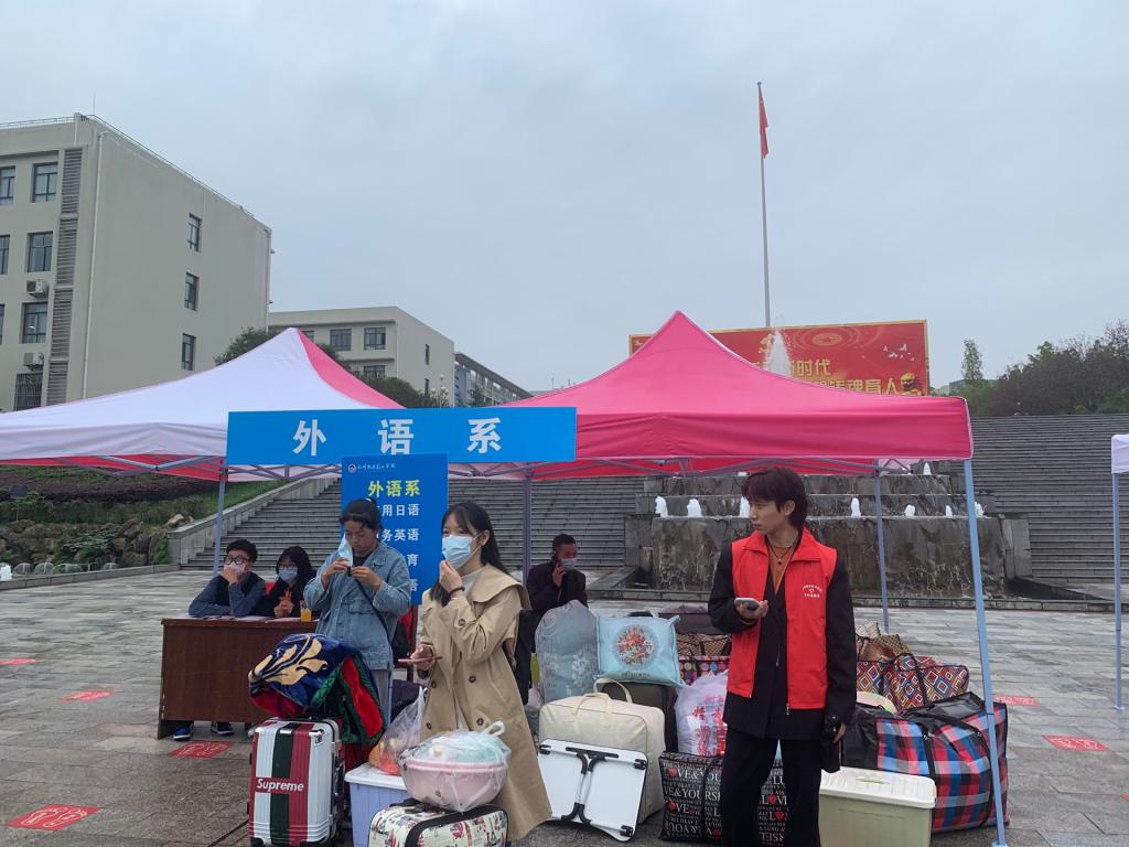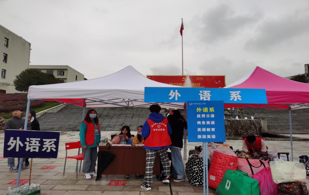 一路长途跋涉,一路期待满怀,只为赴十月之约。2020年10月19日,外语系2020级迎新工作顺利拉开帷幕。根据学院统筹安排,结合疫情防控的特殊情况,我系从校门口到学生食堂外均设立了多个接待服务点,外语系团总支学生会全体团学干部积极充当迎新志愿者,全程为我系2020级新生做好引导、登记、咨询、入住、物资领取、行李搬运等相关服务工作,天气虽然渐渐转凉,但志愿者们的热情让大家都感受到了回家的温暖。