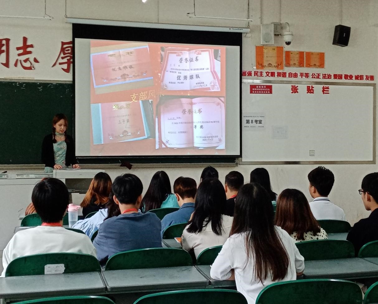 “党有号召,团有行动”,为纪念五四青年节,迎接建党百年的到来,2021年5月11日12:30,由四川职业技术学院主办,外语系团总支承办的“最美团支书”演讲比赛在b108顺利举行,出席本次演讲比赛并担任评委的有19级学生会干部及20级部分学生。