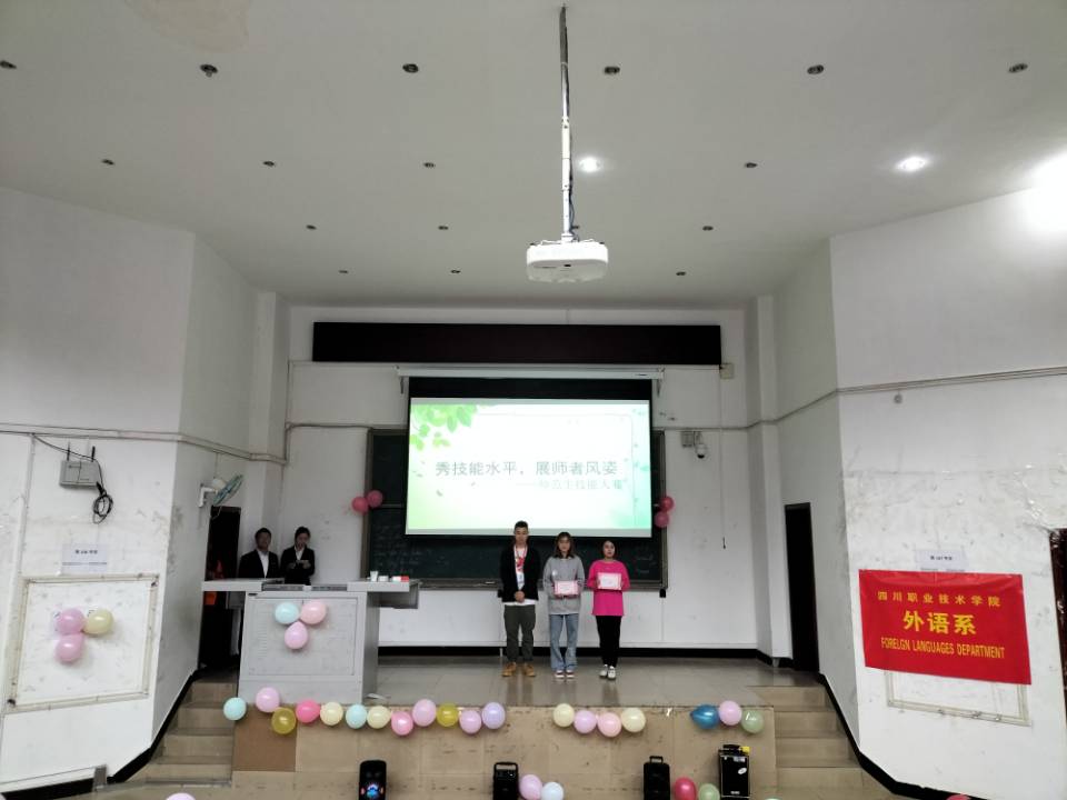 为进一步增强外语系师范生实践应用能力和创新能力,彰显师范特色,强化学生教学技能,2021年5月6日晚19:30,由四川职业技术学院院团委文化传播系主办,外语系学生会社践部承办的以“秀技能水平,展师者风姿”为主题的师范生技能大赛在尚学楼D101顺利举行。出席本次大赛并担任评委的有19级全体学生干部以及20级全体学生。