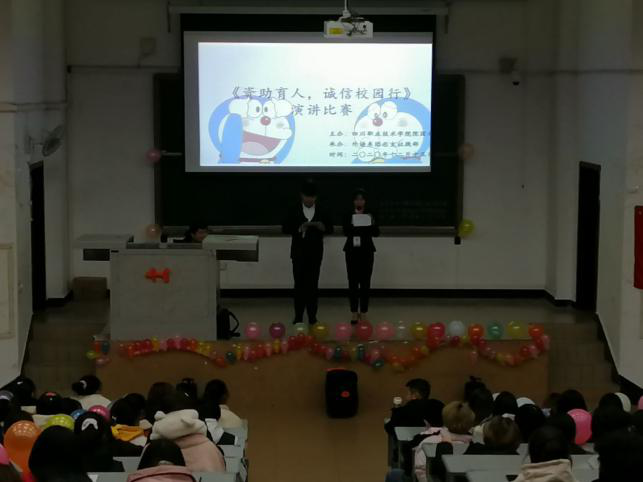 为深入贯彻落实习近平总书记关于教育的重要论述,落实立德树人的根本任务,进一步引领广大青年学子感恩新时代,感受在国家资助政策帮助下自立自强,拼搏向上的奋斗历程。2020年12月15日星期二晚7点30分,由四川职业技术学院主办,外语系团总支承办的“资助育人,诚信校园”演讲比赛决赛在尚学楼D101顺利开展,本次比赛由外语系学生会各部门负责人担任评委,外语系全体学生观看比赛。