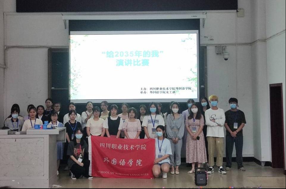 强化“技能成才强国有我”主题教育活动,深入学习习近平总书记给中国冬奥健儿的重要回信,传承冬奥精神,争做奋进榜样2022年5月24日晚19:40外国语学院女工部在D201教室开展写给2035年的我演讲比赛,外国语学院学生会主席团及各部门负责人出席本次比赛并担任评委,各班班长与学习委员到场观看此次比赛,