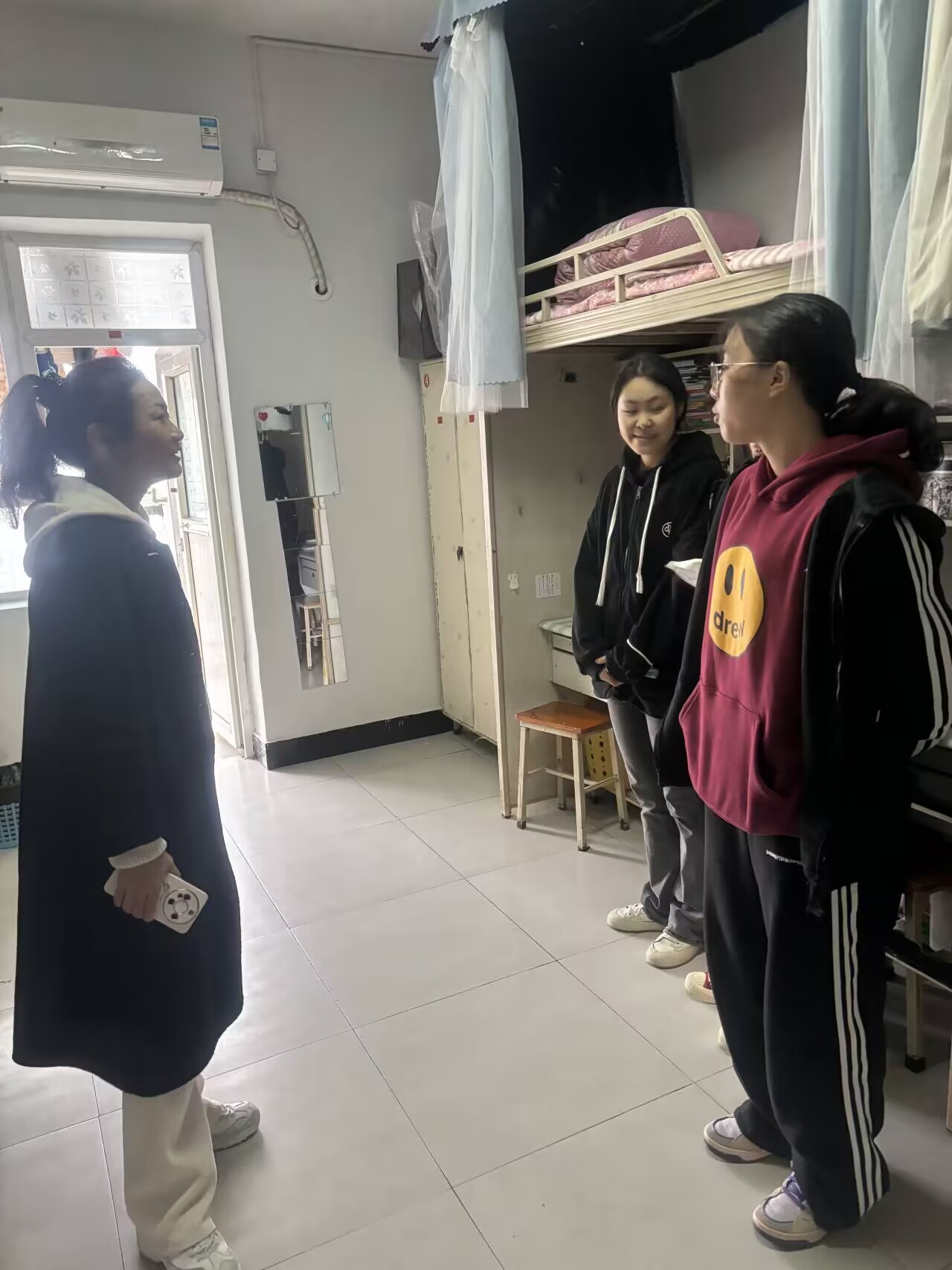 为落实立德树人根本任务,充分发挥学生公寓育人平台重要作用,强化外国语学院学生思想、文明、劳动等教育,为同学们营造美观健康的公寓环境,以优良寝风促进学风建设。 2023年11月16日早上9:00,外国语学院积极响应学校号召,在以“创建文明寝室,共享健康生活”为主题的背景下对“7S标准”文明寝室创建工作深入学生寝室进行指导