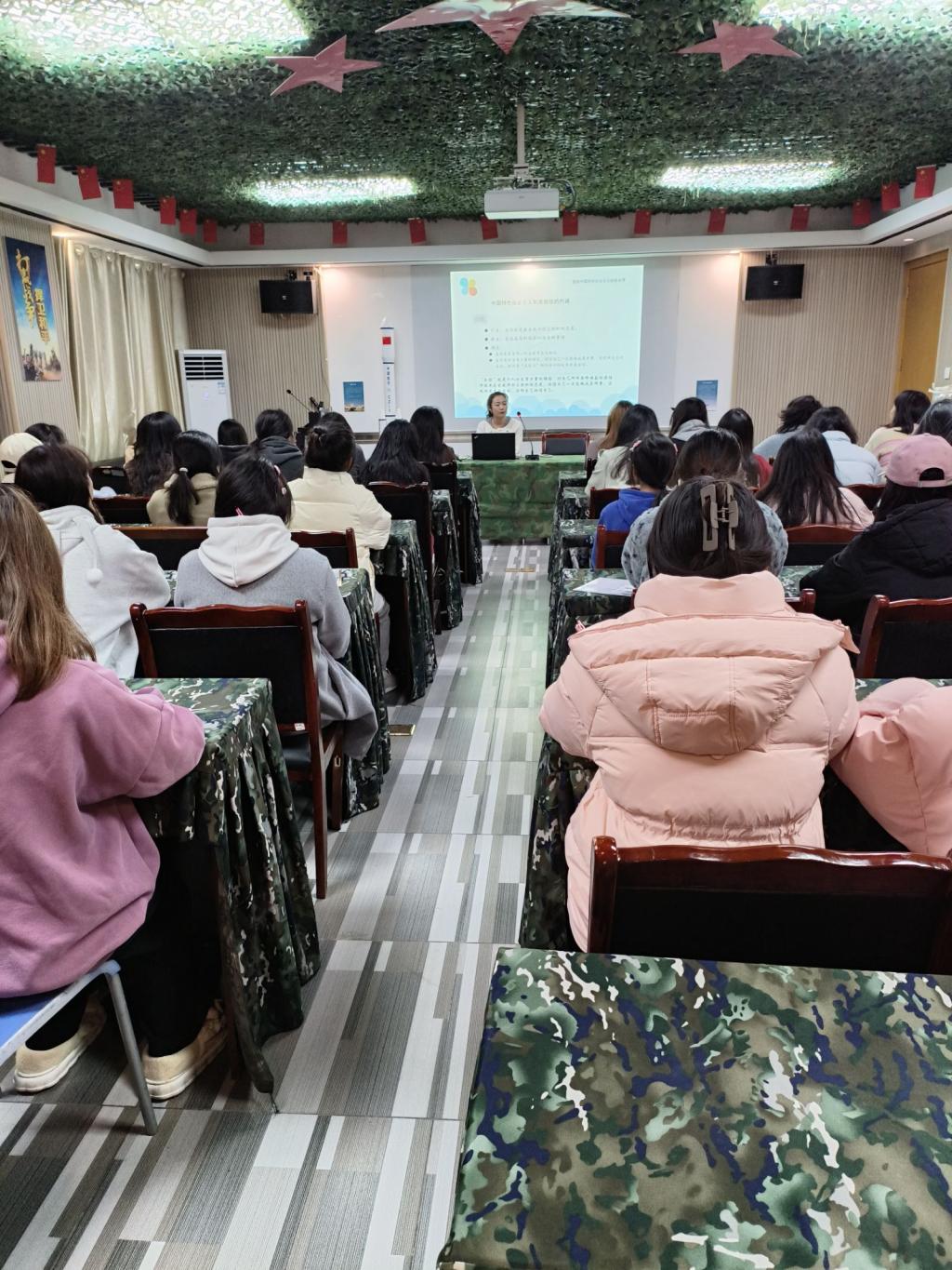 为进一步落实学校桃李“一站式”学生社区建设,号召学生深入学习贯彻习近平新时代中国特色社会主义思想,2023年12月7日下午,外国语学院党总支在学校武装部会议室开展了走进桃李社区专题党课教育。本次党课分别由外国语学院党总支书记翟莲和党总支副书记王娅莉进行讲授,辅导员、入党积极分子和学生干部出席。