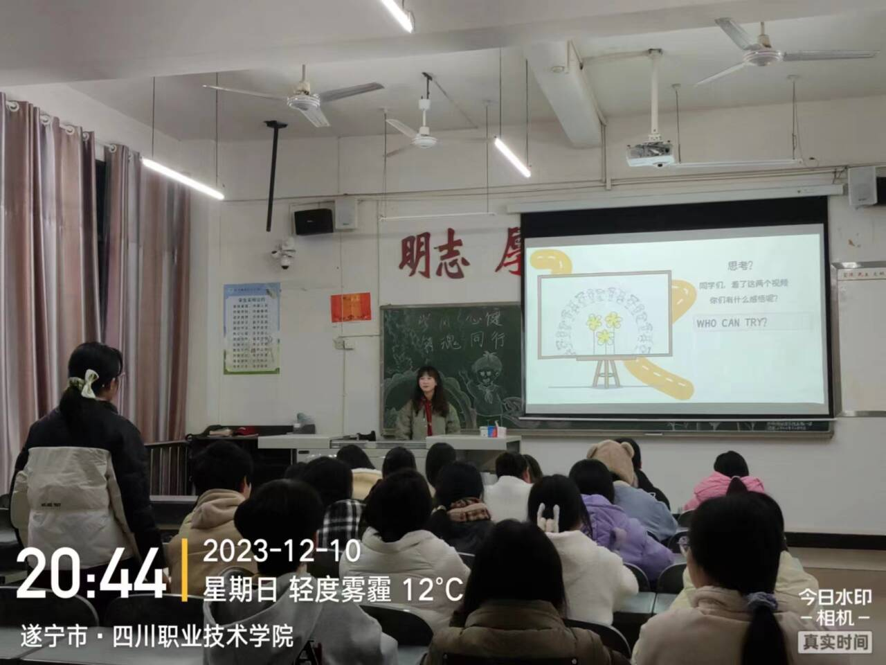 为进一步提高我院学生的心理健康素质,引导同学们以良好、阳光、理智、健康的心态去面对学习中的压力、困难及挫折,营造良好的学习氛围,提升我院整体教育水平,2023年12月10日,外国语学院组织2023级各班在相应晚自习室开展了以“学风铸魂,心健同行”为主题的心理健康主题班会。