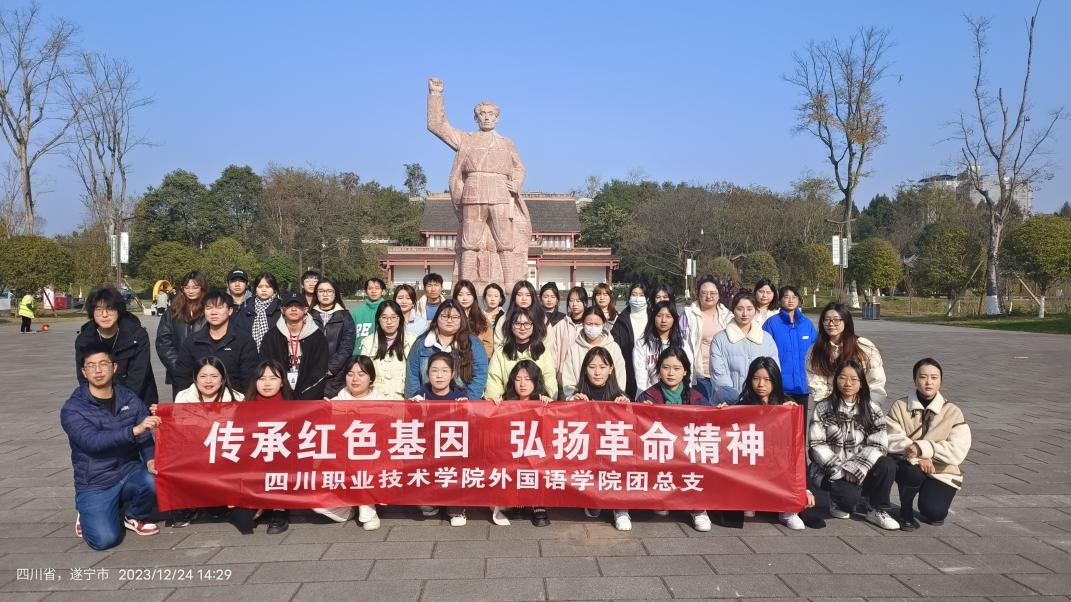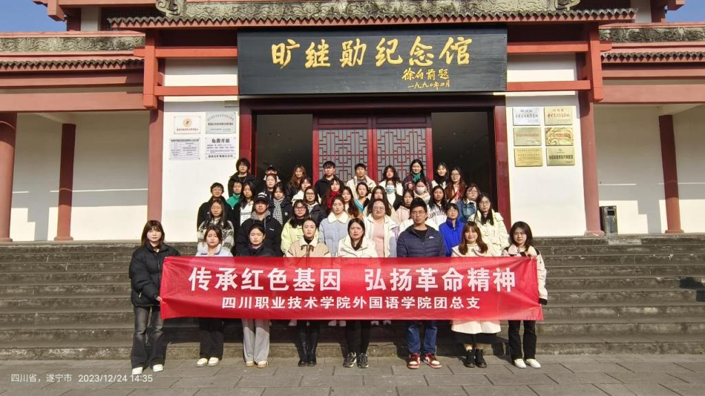为缅怀革命先烈、凝聚青春力量、奋进新征程,2023年12月24日下午外国语学院40余名团学干部在团总支书记杨琴的带领下,前往蓬溪县旷继勋纪念馆开展“传承红色基因 弘扬革命精神”的红色主题教育活动
