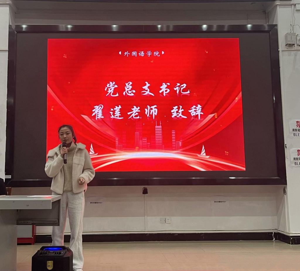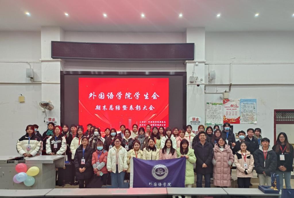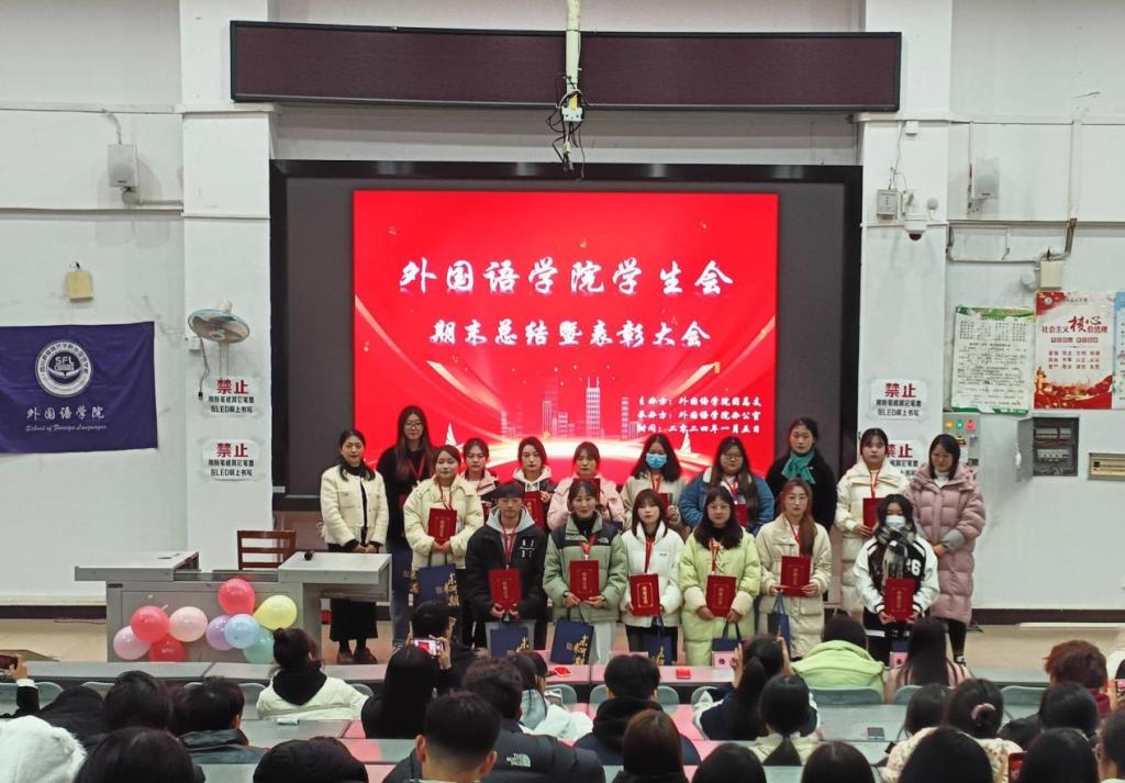 2024年1月5日晚19:00外国语学院团总支学生会期末总结暨表彰大会在B109顺利召开。外国语学院党总支书记翟莲、团总支书记杨琴、辅导员周杰、沈磊、廖星雯、黄蕴鑫、团总支副书记代叶梦以及学生会各部门负责人和干事出席了本次大会。