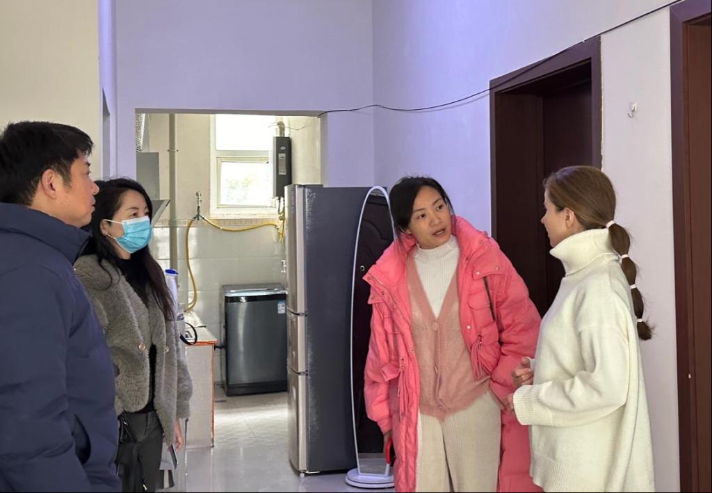 翟莲一行首先询问了外籍教师的适应情况,并叮嘱她们若有需要可随时联系学院指定联络人,学院一定会及时帮助她们解决在工作和生活中遇到的困难,做好服务保障工作。并希望她们在接下来的任教工作中为外国语学院学生提供全新的视角,切实提升学生的英文口语水平,同时也希望外籍教师以外国语学院为家,关心学院发展,同心协力,共谱学校国际化发展新篇章。Annastasiia Shaitukhova老师表示感谢学院的关心,她对学校提供的住宿感到非常满意,并且十分期待与学生见面,同时表示了她对学院高质量发展以及学校国际化发展的良好祝愿。Eve Pennington老师对学院领导一行的慰问表达了感谢,她表示希望能在新学期与学生们进行跨文化深度沟通与交流,同时她也表示一定发挥好自身优势助力学院发展,为学校国际化建设做出外籍教师应有的贡献。