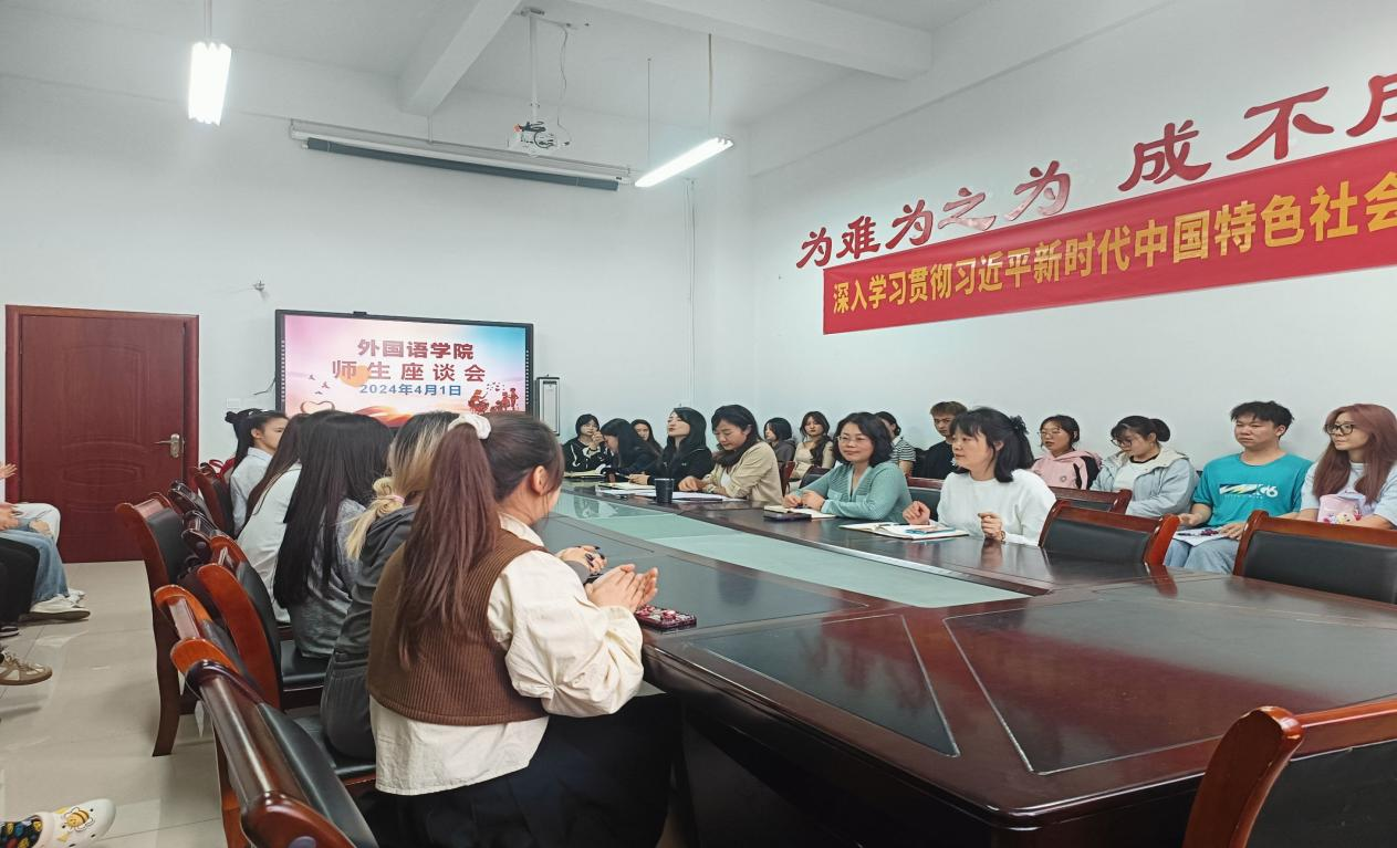 为进一步提升管理育人、服务育人的针对性与实效性,倾听学生心声,解决学生问题,服务学生发展,助推学校教风学风建设。2024年4月1日下午6点10分,外国语学院在博雅楼M119会议室顺利开展师生座谈会。党总支书记翟莲、党总支副书记王娅莉、副院长邬东、团总支书记杨琴、教学科科长邓婷以及外国语学院各班40余名学生代表参会,会议由王娅莉主持。