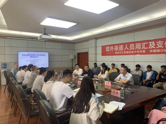 会上,王平指出本次座谈会是为了深入了解外籍师生在生活支付方面的难题,为外籍师生提供用汇、换汇及支付的便利化服务,同时表示希望通过此次座谈会能够深化双方的交流合作,丰富服务内涵,为外籍师生在华生活和学习提供便利。中国人民银行遂宁市分行、国家外汇管理局遂宁市分局相关负责人介绍了目前能提供的服务类别,随后与外籍师生进行亲切交谈,为其解答在生活消费支付中遇到的疑难问题。同时表示将持续优化账户服务、开户流程等,为外籍师生在最大程度上带来便利。来自越南的国际学生阮玉簪表示,作为外籍人士,在日常生活的支付方面有许多不便之处,通过这次座谈活动,解决了自己在中国境内的换汇难题,非常感谢学校为他们提供平台解决实际的困难。