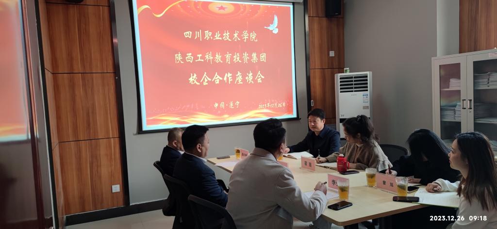 12月26日,陕西工科教育集团总经理陈福泽、陕西中创丝路科技有限公司总经理李元林、陕西众城时创智能科技有限公司总经理李生伟、四川智胜人力资源有限公司总经理曾旭一行四人到我院进行校企合作、产教融合项目的深度交流和探讨。